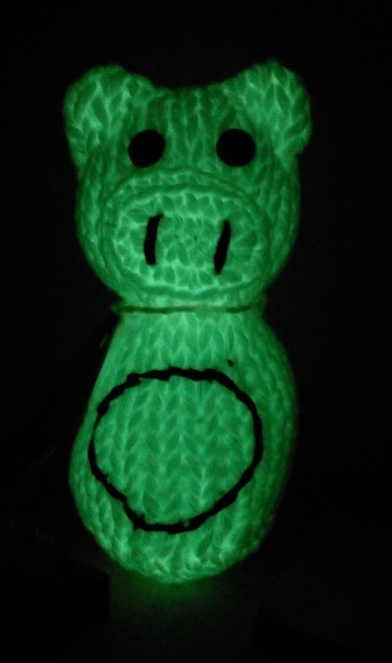 Este peluche de pupsie fluorescente, fabricado a mano con lana fluorescente 100% poliéster, te vigilará por las noches, y será la luz en medio de las tinieblas de tu habitación.